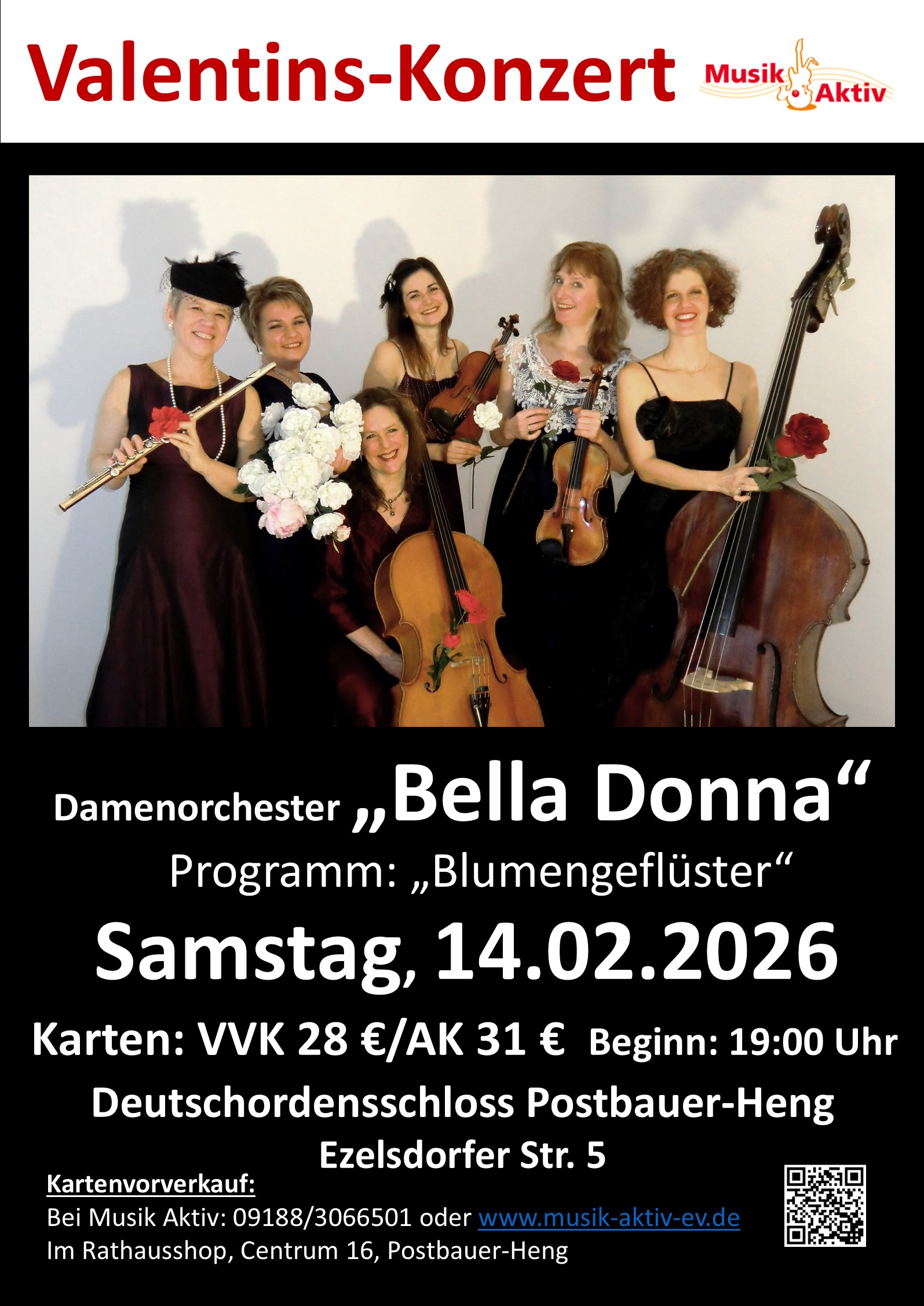 Valentinskonzert mit dem Damenorchester „Bella Donna“mit ihrem Programm „Blumengeflüster“. Karten erhältlich bei: