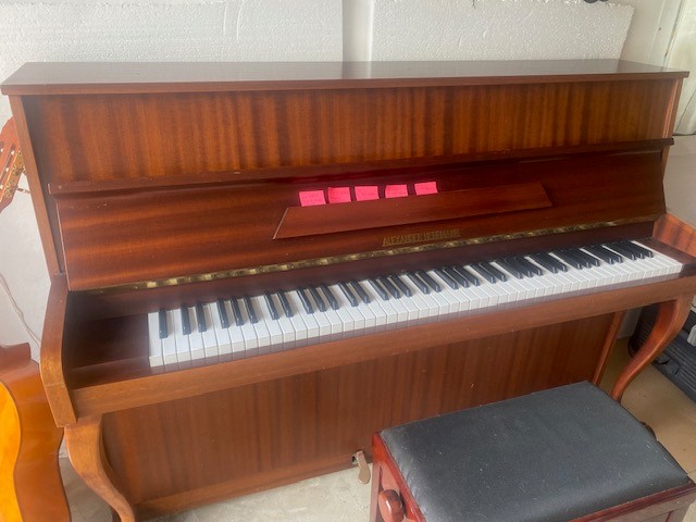 Das Klavier ist ca. 50 Jahre alt. Es ist nicht gestimmt, jedoch funktionstüchtig. Da das Klavier steht seit einem Jahr unbenutzt in der Garage. Das Klavier kann vor Ort auf eventuelle Schäden besichtigt werden.